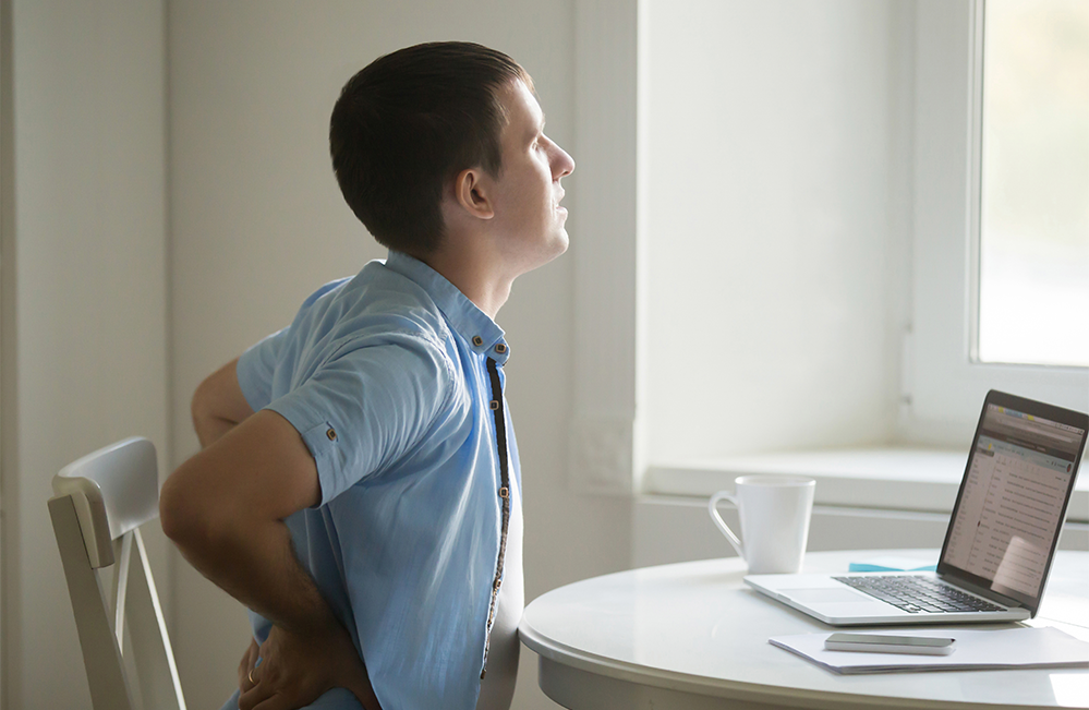 หากตำแหน่งของเบาะเก้าอี้และโต๊ะทำงานไม่สัมพันธ์กัน อาจทำให้คุณนั่งท่ายกไหล่โดยไม่รู้ตัว โดยเบาะเก้าอี้ที่นั่งอาจจะต่ำเกินไป หรือโต๊ะทำงานอยู่สูงเกินไป ทำให้เวลาพิมพ์งานหรือมีการคลิกเมาส์ ต้องยกไหล่ขึ้นมาเพื่อความถนัดโดยไม่รู้ตัว จนเป็นสาเหตุของการปวดไหล่ และปวดหลังเรื้อรังได้